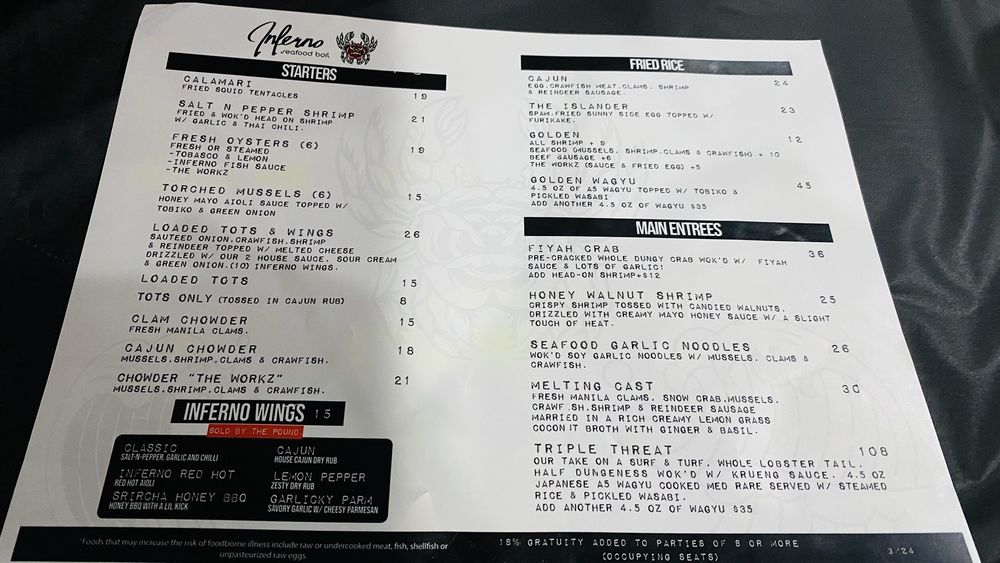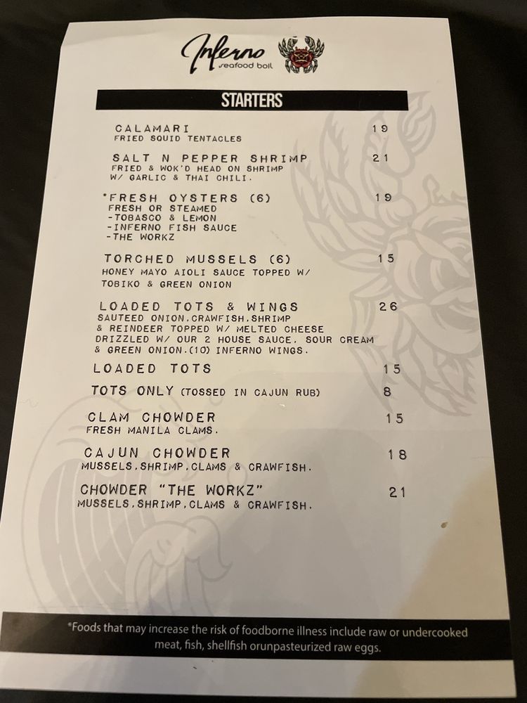 Introducing the Menu at Inferno Seafood Boil